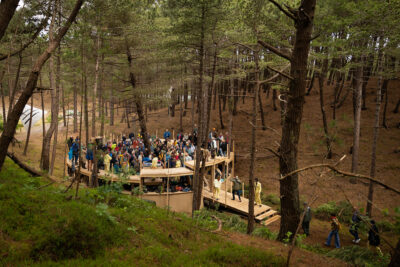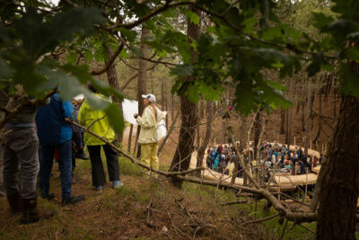 Kunnen we ons zelf verliezen en elkaar vinden? Mag er geflirt met het mos, gevoosd met boomlootjes? Een prille traditie schiet op als helmgras, doe de groetjes aan de eeuwen die na u komen. NAU is een over-the-hill-party van onze beschaving. Dit is nog niet het einde, maar van hier kun je het wel zien. Let’s dance. En wel zo dat de boswachters er ook wat aan hebben.
